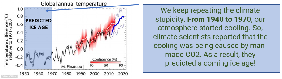 Let me put predicting climate change into terms that need to be understood by the “Climate Changers”. Using the last 100 years or even 200 years of data to predict climate change is like using the weather data from yesterday and data from today to predict the weather for the next 100,000 years. Sounds impossible, doesn’t it? This is what those who keep predicting climate crisis are in fact doing. The key thing to remember is that the earth is 4.5 billion years old, and to even attempt to predict climate change without a much larger sampling of data, around 450 million years worth is faulty logic. Doing what some are doing today, using 30 or 40 years of weather data to make climate predictions is like taking yesterday’s weather and using today’s weather to predict the weather for the next 100,000 years. The predictive climate models they use to make