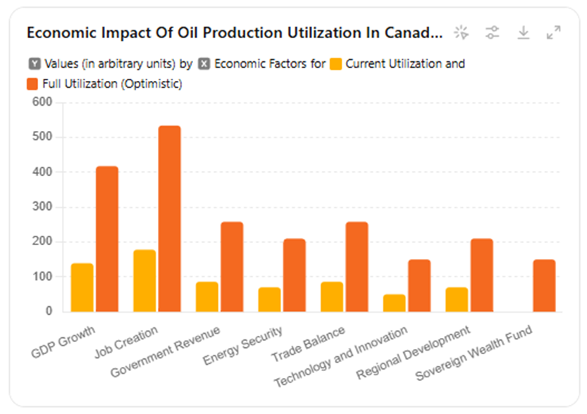 - Full Utilization (Optimistic): Major economic growth in provinces like Alberta, Saskatchewan, and Newfoundland and Labrador.