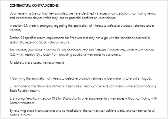 - The tool STRATETGEN ANALYTICS, was utilized to perform an in-depth analysis of a wide range of contracts. This AI-powered tool is designed to detect ambiguity, contradictions, and complex legal language. Its ability to evaluate over 35 contractual elements, including jurisdictional insights and readability enhancements, was critical in identifying systemic issues in contract drafting and review.