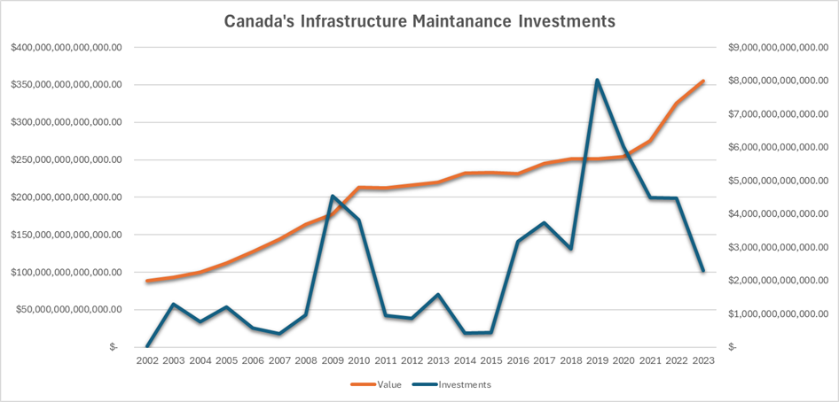 Canada’s infrastructure is the backbone of our economy, connecting communities, supporting public services, and fostering growth. However, recent assessments and financial trends reveal a grim reality: our infrastructure is deteriorating at an alarming rate, and the investments necessary to maintain and repair these critical assets are dwindling.