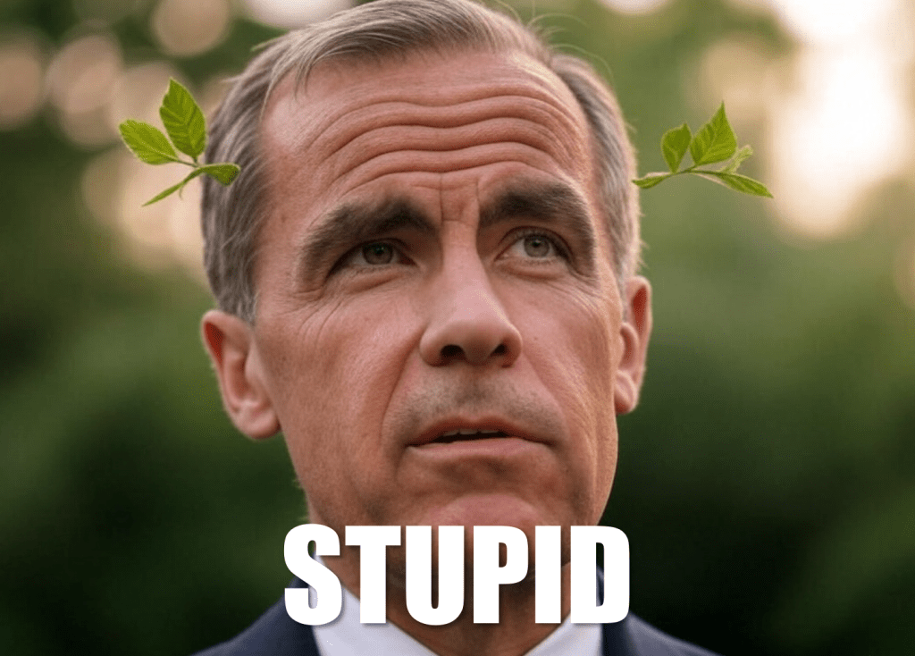 Yet Carney’s got this two-trillion-dollar, 30-year plan—60 billion a year—when we’re already drowning in debt from Trudeau’s COVID cash printer. Inflation’s soaring, food and gas are insane, and he wants more? For a non-crisis? Al Gore’s melting ice caps? Never happened—NASA says they’re growing. Polar bears? Fine. Sea levels? Steady, not swallowing Tuvalu. This isn’t science—it’s a racket, kicked off by BP’s 2004 ‘carbon footprint’ scam to guilt us while oil barons cash in. China builds, India thrives, and Canada’s left chasing a net-zero mirage that changes zilch. Mark, your blithering green fantasy’s a bust—our trees have this covered. Focus on the real polluters, not our overachieving backyard!”